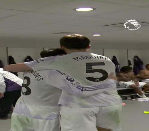 英雄凯旋!马奎尔赛后回到更衣室,队友拍头鼓掌欢迎+B费搞怪庆祝